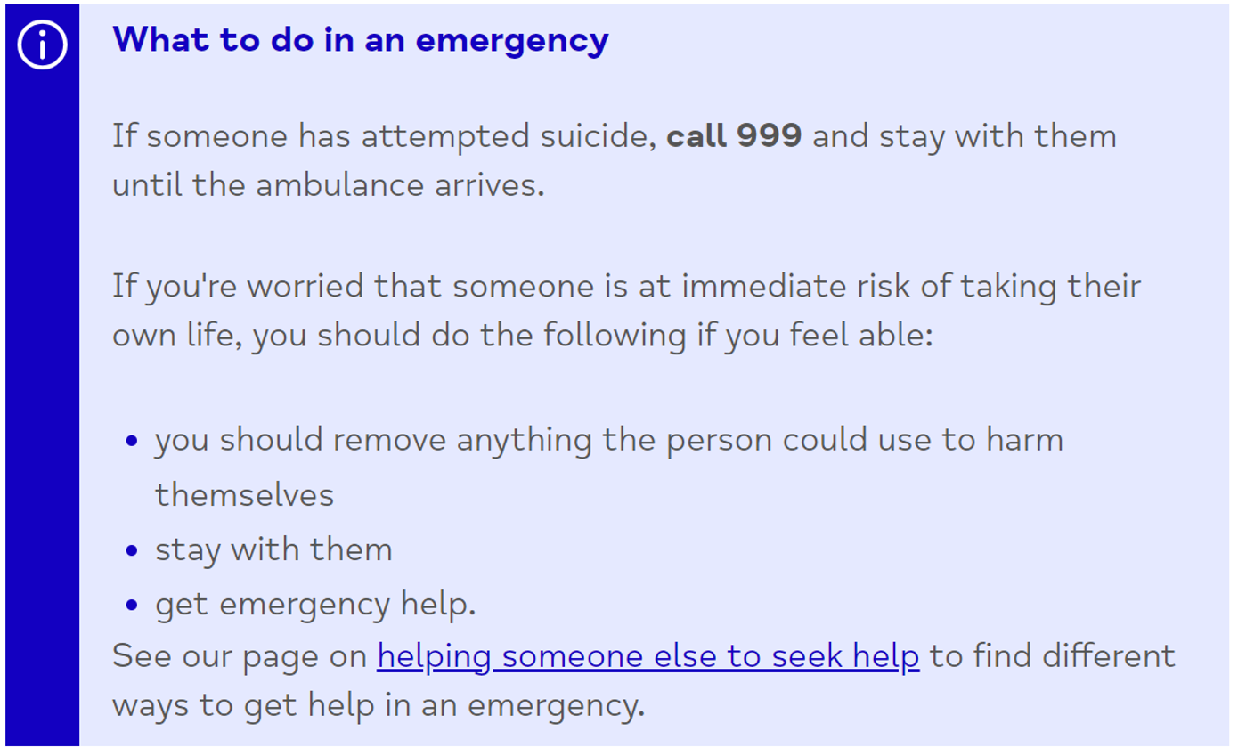 If persons are feeling suicidal, they might be scared or confused by these feelings.