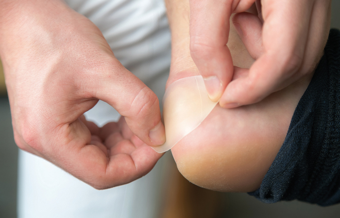 Plasters made especially for blisters help to keep the area clean from bacteria while providing a cushioning barrier to footwear.