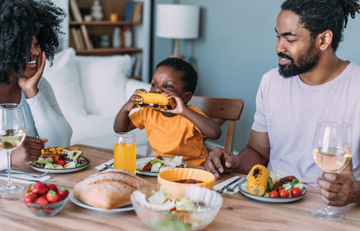 Eating meals around the table with other family members will encourage children to try a variety of foods and help them focus on mealtimes.