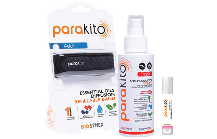 Parakito is a natural, effective range of mosquito protection products ideal for travellers, says manufacturer BHR Biosynex. The anti-mosquito bracelets work by masking CO₂ emissions, making users less visible to mosquitoes, says the company. Combined with plant-based sprays, which have proven efficacy for eight hours and which is suitable for tropical and infested areas, roll-ons, and soothing after-bite treatments, the Parakito range provides comprehensive bite prevention and relief without harsh chemicals, adds the manufacturer.