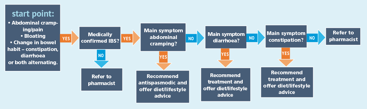 This handy 10-minute clinic is designed to act as a quick reference guide that will help you when advising customers suffering from irritable bowel syndrome (IBS). The flowchart below will lead you through the decision-making process to help you respond to customer queries
